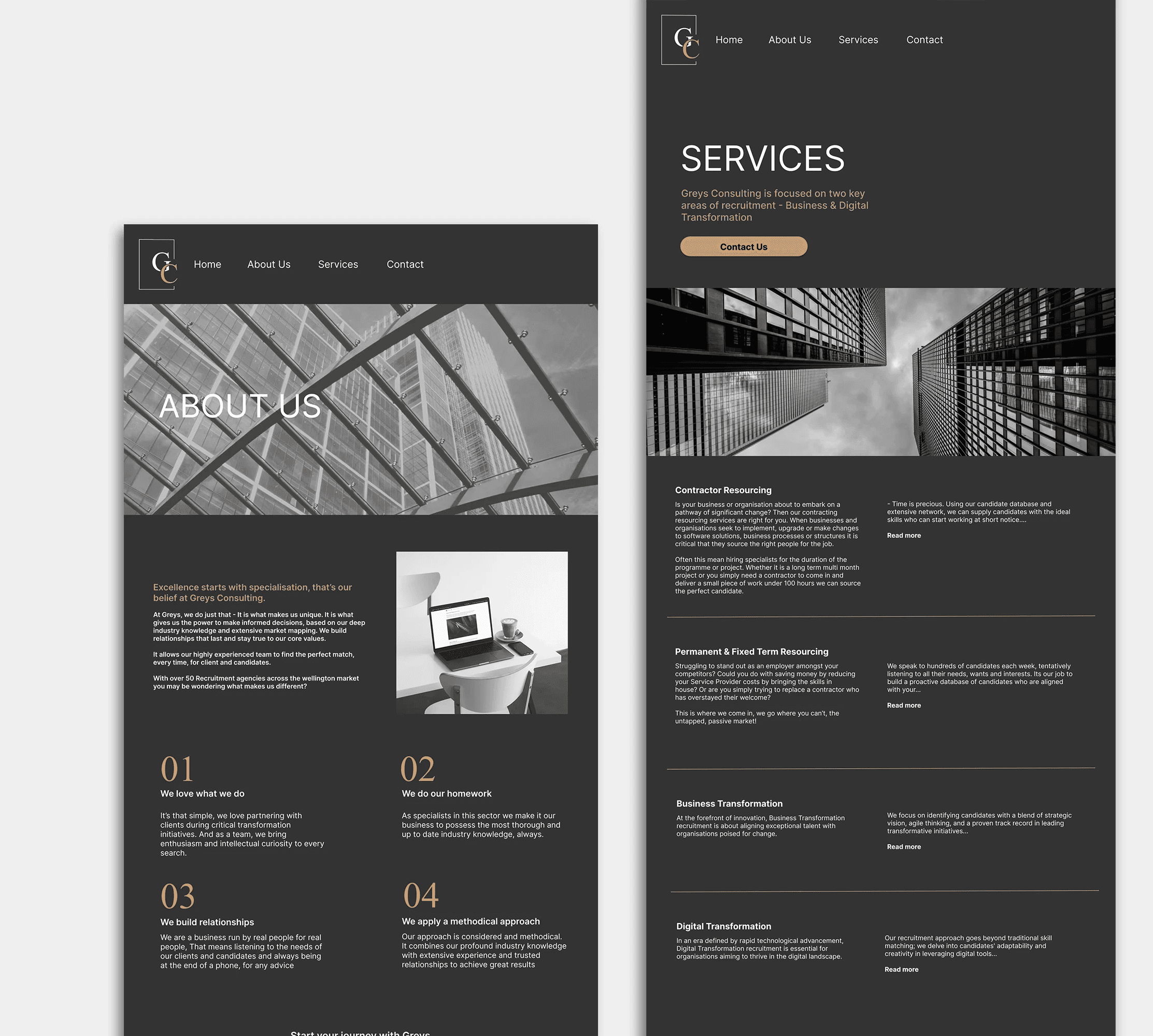 A website refresh centred on a sophisticated dark palette, clean hierarchy, and professional visual tone.