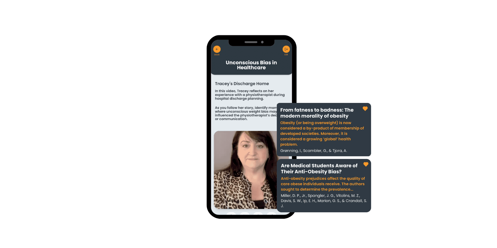 Scenarios train recognition, but they can't fully convey what it feels like to be on the receiving end of bias. The readings and video content fill that gap — grounding the learning in lived experience rather than clinical abstraction. Hearing directly from patients shifts the exercise from intellectual to empathetic, which is where behavioural change actually starts.